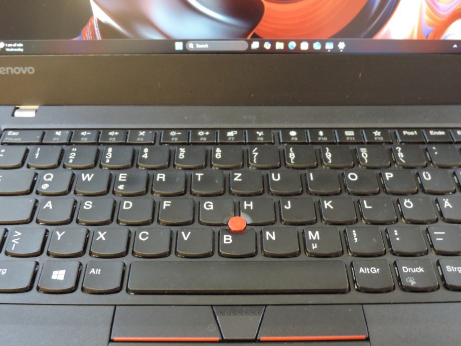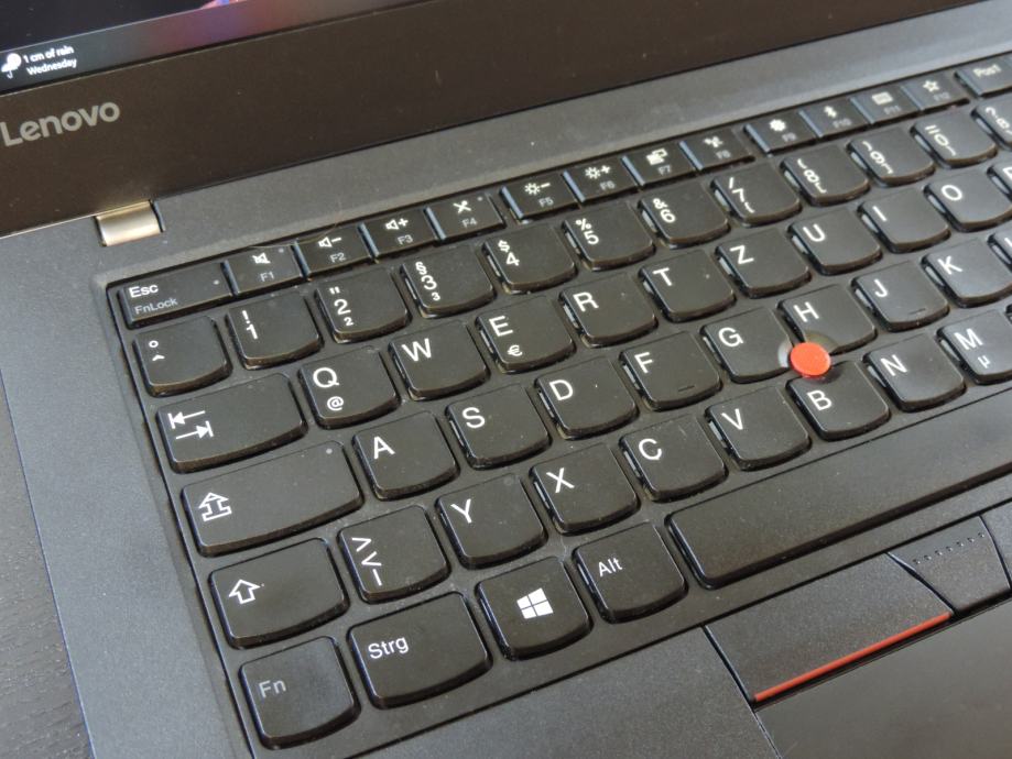 Njemačka tipkovnica je u odličnom stanju s jako malo tragova korištenja, uglavnom malo polirane (sjajne) tipke i 100% bez oštećenih / izgrebanih znakova. Sve tipke su testirane i rade savršeno. Trackpoint i touchpad rade savršeno kao i dodatne tipke. Općenito stanje može se provjeriti na fotografijama. Sustav konfiguriran za hrvatski jezik a tipkovnica se može adaptirati na hrvatsku sa naljepnicama.