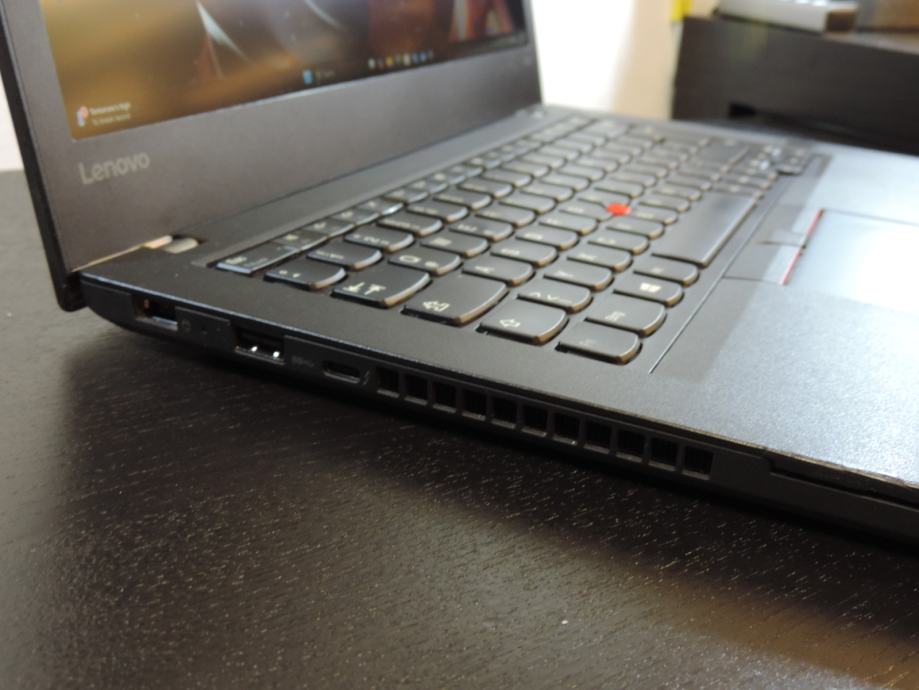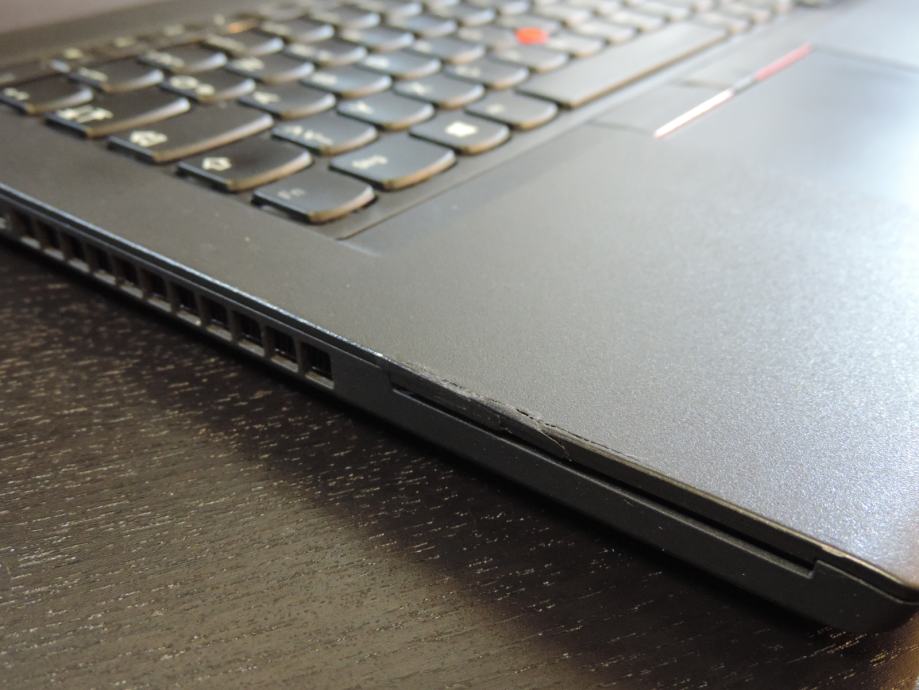 Na prodaju dobro očuvani prijenosnik ULTRABOOK LENOVO ThinkPad T470 (MODEL 20JN-S02104) u dobrom estetskom stanju bez značajnijih vidljivih detalja vrijednih posebnog spomena osim jedne male bočne pukotine na kučištu koja je popravljena i ne utječe na rad a nije ni nešto posebno vidljiva. Posjeduje male tragove trenja od nošenja u torbi i pokoju mikro ogrebotinu, normalne za ovaj tip laptopa (soft touch površina). Visokokvalitetna vlaknima ojačana plastika sa soft touch završnom obradom otporna na grebanje je bez dubokih ili velikih ogrebotina , poklopac ekrana, tipkovnica, oslonac za ruke - palmrest, touchpad e trackpad, tipke i okvir ekrana su u savršenom stanju. Za detalje pogledati fotografije.