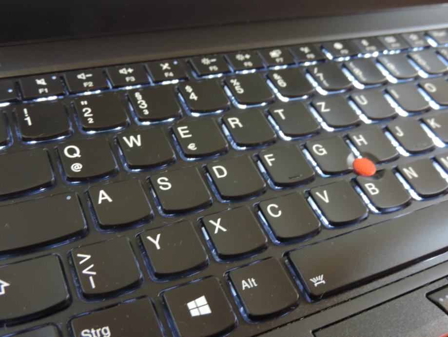 Osvijetljena njemačka tipkovnica je u odličnom stanju bez tragova korištenja, bez poliranih (sjajnih) tipki i 100% bez oštećenih / izgrebanih znakova. Sve tipke su testirane i rade savršeno. Trackpoint i touchpad rade savršeno kao i dodatne tipke. Općenito stanje može se provjeriti na fotografijama. Sustav konfiguriran za hrvatski jezik a tipkovnica se može adaptirati na hrvatsku sa naljepnicama.