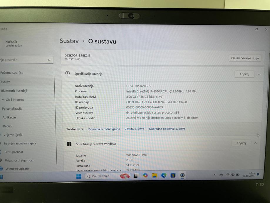 Prodajemo rabljeni Lenovo ThinkPad T480 laptop. Laptop je testiran i isparavan. Dolazi s punjačem.