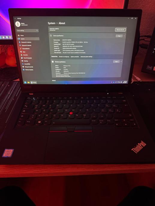 Prodajem Lenovo Thinkpad T490 sa Intel i7-8565U, 40GB RAMa i Kingston NVME SSDom od 1TB (930 GB formatiran). DE tipkovnica, nalijepljena HR slova. 14" ekran, 2.4/5 GHz AC wireless, utor za SIM karticu, 2x USB-C, 3x USB, 1x HDMI, 1x Ethernet. Dolazi sa punjačem (USB-C 65W).