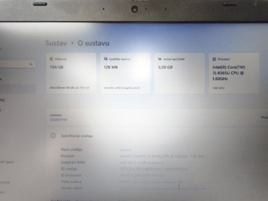 prodajem odličan Lenovo Thinkpad L490 s 14"HD ekranom,Intel i5-8365u CPU,8GB RAM memorije,SSD diskom 240GB,HDD diskom 500GB,osvjetljena tipkovnica,baterija odlična,Windows 11 pro licenca + svi potrebni programi instalirani,spreman za rad.idealan je za prenošenje radi manjih dimenzija a zbog kvalitetne i robusne izrade je pogodan i za autoservise i slične radionice.