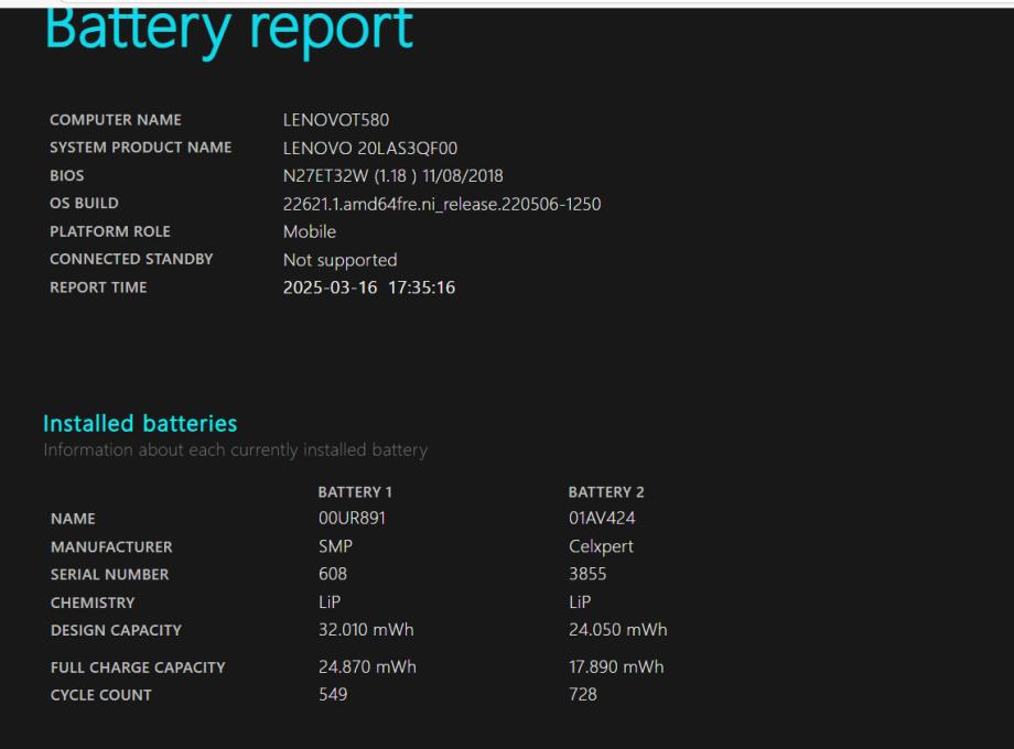 Trenutni puni kapacitet: 24.870 mWh (≈78% originalnog kapaciteta)