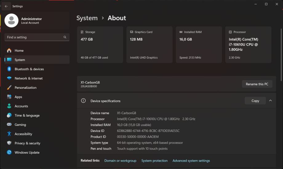 Lenovo ThinkPad X1 Carbon G8, i7-10610U, 512GB NVMe, Touchscreen, LTE