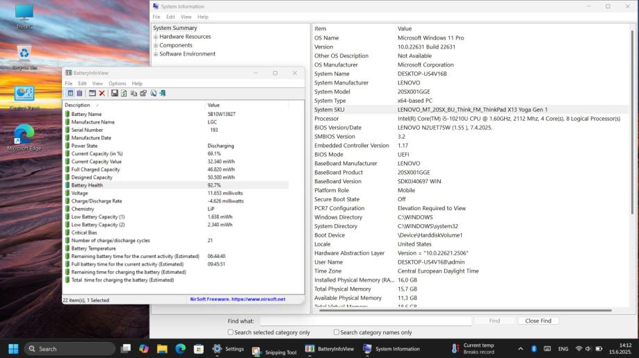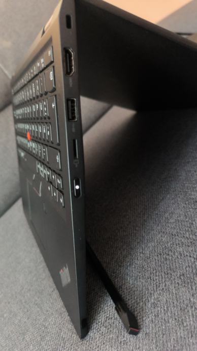 Prodajem rabljeni laptop / convertible 2 u 1 Lenovo ThinkPad X13 Yoga Gen 1, procesor Intel Core i5-10210U 1.6-2.11 GHz, 16 GB RAM DDR4, 512 GB SSD disk NVMe M.2 2280, 13,3" full HD IPS 1920x1080 16:9 touchscreen / dodirni zaslon koji se može zarotirati za 360 stupnjeva (u kućištu integrirana olovka / stylus), Intel UHD grafika, WiFi, Bluetooth, Dolby stereo zvučnici, web kamera, 50 Wh Li-ion baterija. Od ulaza ima 2 x USB 3.1 Gen1 port, 2 x USB Gen2 Type-C (Display Port), HDMI, Kensington Lock, kombinirani 3,5 mm stereo jack, Smart card reader, micro SD Card reader. Vrhunski poslovni laptop / convertible s izuzetno kvalitetnim kućištem izrađenim od magnezija, čvrst i robustan, težak samo 1,29kg. Instaliran operativni sustav Windows 11 Pro 23H2 (licenca pohranjena u BIOS-u). Na laptopu sve odlično radi i super je očuvan. Zdravlje baterije je na 92,7%, dakle odlično. Tipkovnica ima pozadinsko osvjetljenje i njemački raspored tipki. Uz laptop dolazi originalni USB Type-C punjač. Cijena 555€. Mogućnost plaćanja preko Revolut računa. Na užem području Splita mogućnost besplatne primopredaje i testiranja laptopa, a za ostatak Hrvatske i inozemstvo šaljem kako god se dogovorimo. Za informacije nazvati na broj +385/98/542-000 ili pošaljite poruku preko Njuškala. Ako me budete kontaktirali preko Njuškala, pazite da točno upišete svoju e-mail adresu.