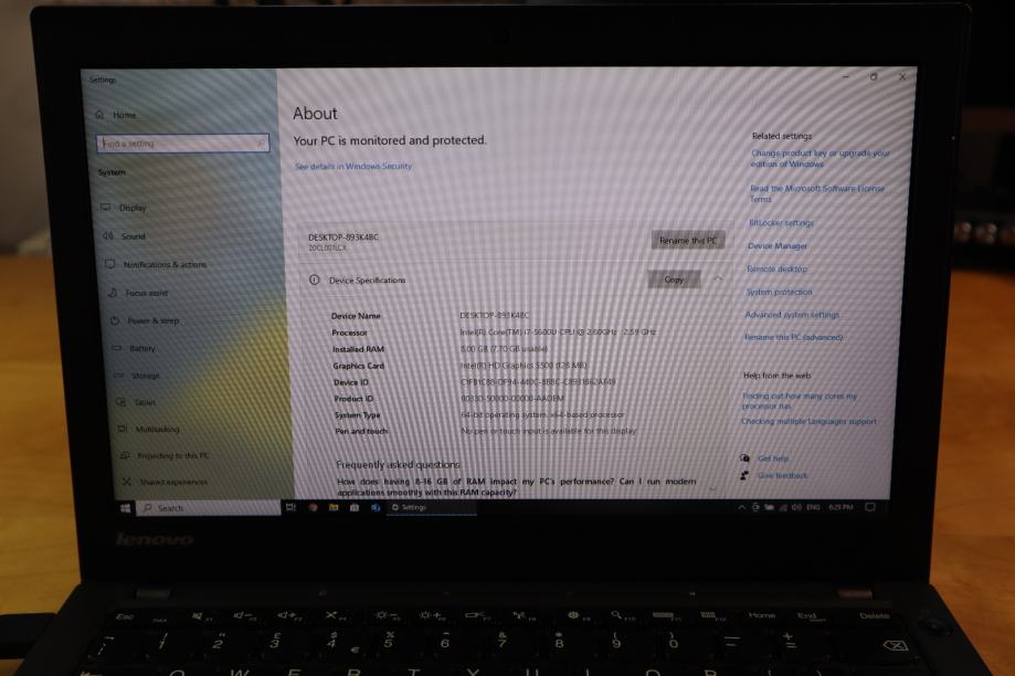 Lenovo Thinkpad X250, I7-5600U, 256GB SSD, Windows 10