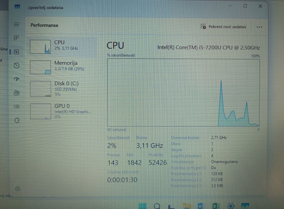 Procesor: Intel Core i5-7200u, (4 Thread, 3M Cache, 3.2GHz)