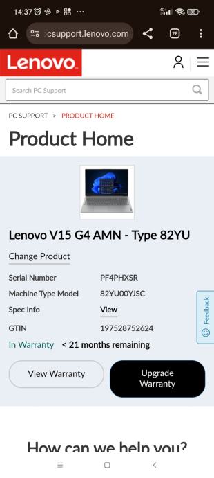Model: Lenovo V15 G4 (82YU00YJSC)