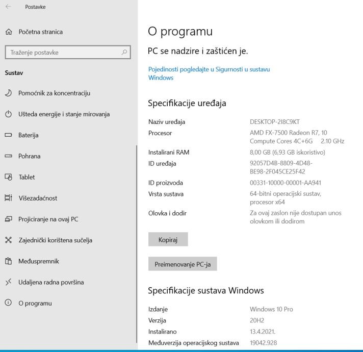 - Procesor AMD FX-7500 10 jezgreni (4 CPU + 6 za grafiku)