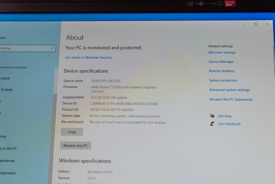 Procesor AMD Ryzen 7 5700U sa Radeon grafičkom 1,80 GB.