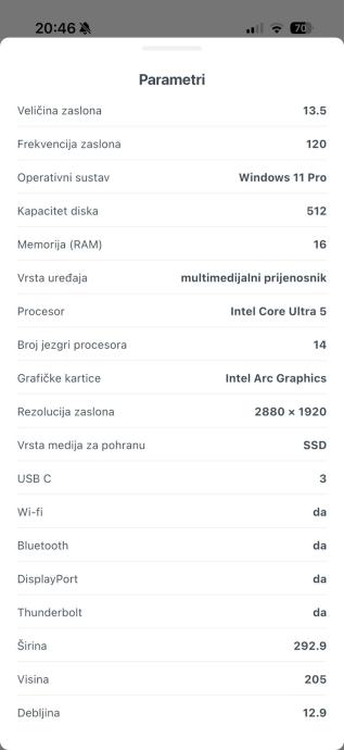 13.5" 2.8K IPS 120Hz 500nita ekran