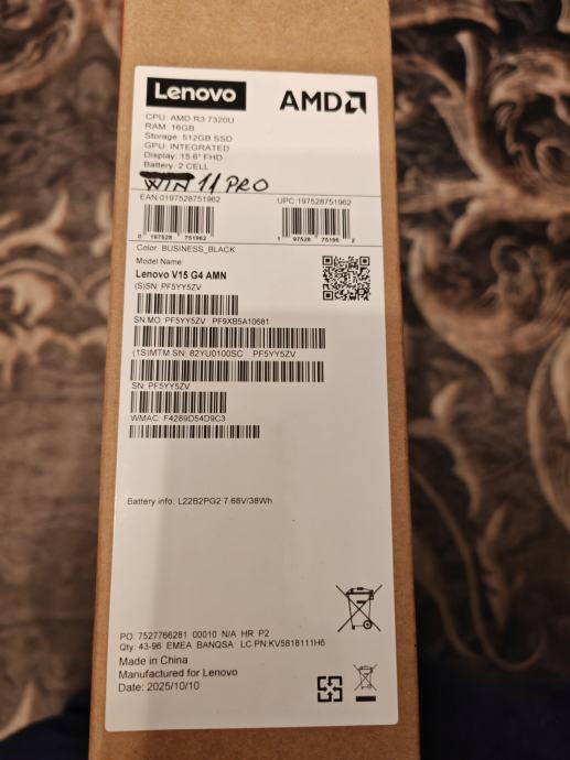 Kao iz naslova prodajem novi prijenosnik Lenovo V15 G4 ima račun i garanciju 24mj. dobiven na poklon samo otvoren i isproban te stavljeni programi da vidite konfiguraciju baterija traje 5-6 sati bez problema,na njemu windows 11 pro sa digitalnim ključem gratis nova torba nikad nošena specifikacije imate na slikama,disk je nvme m2 od 512gb