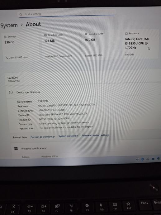 Thinkpad Carbon X1 i5 8350u/16gb ram/256 ssd/14"FHD/Win 11 Pro
