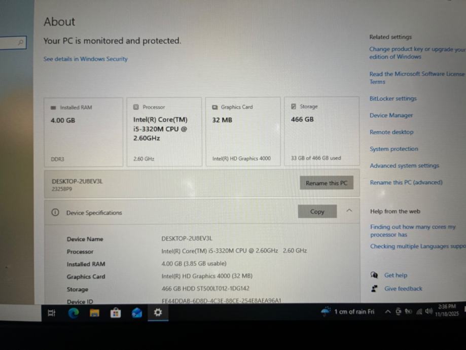 - 2.6 GHz Intel Core i5 3320M
