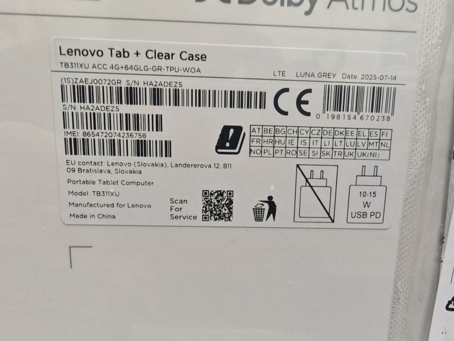 Lenovo Tab model TB311XU ACC 4G+64G,Octa core processor, FHD display 10,1", stereo audio...