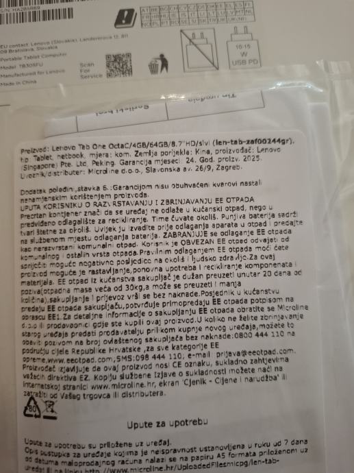Prodajem novi zapakirani tablet Lenovo Tab One 8,7"/ 64 GB sa maskicom.