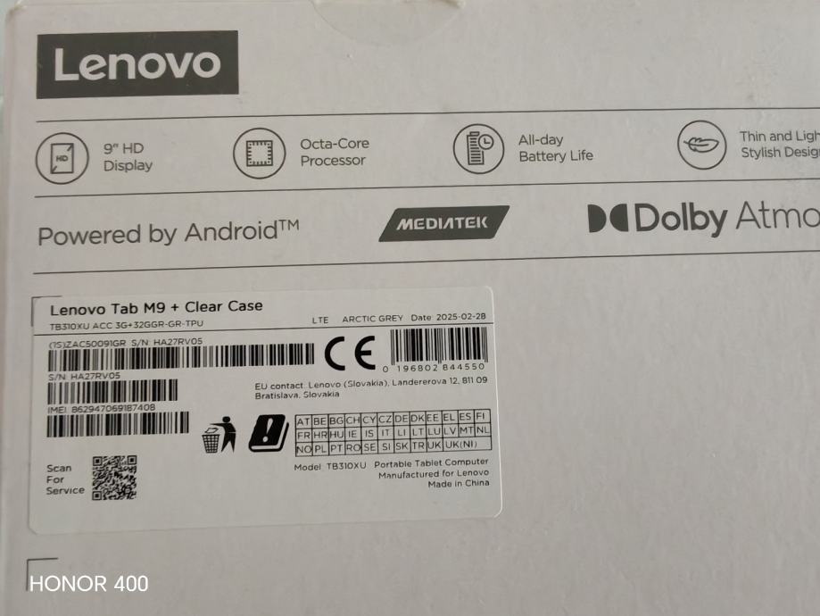 Prodajem potpuno novi Lenovo Tab M9 tablet, zapakiran i nekorišten. Tablet dolazi s uključenom prozirnom zaštitnom maskom (Clear Case).