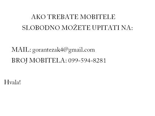 upitati na mail: gorantezak4@gmail.com ili na 099-5948281(molim bez smsa)