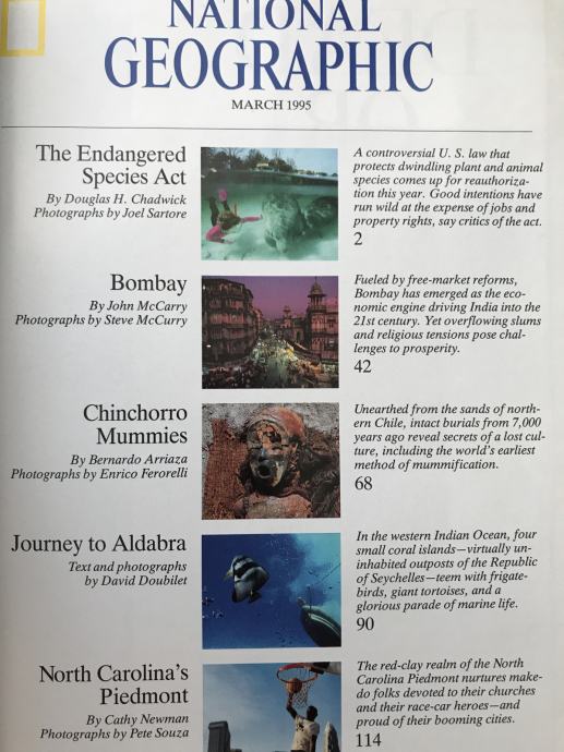 National Geographic (USA iz.) 3/95.:Bombay,čileanske mumije,Seychelles