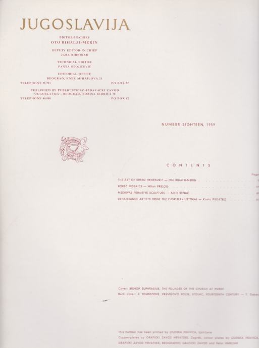Tekstovi: Oto Bihalji-Merin, Milan Prelog, Alojz Benac, Kruno Prijatelj.