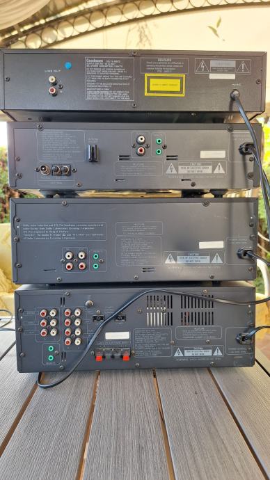 Goodmans HI FI linija, 4 komponente, pojačalo dupli kazetofon, CD player, tuner. Kvalitetna retro linija za ljubitelje klasicnih HI FI linija, jako pojačalo 2 x 100w tesko preko 5 kg, dupli kazetofon sa dolby B i C. Prodaja u kompletu samo 120 €. Tel. 099 7313 821. Moguća dostava Zagreb.