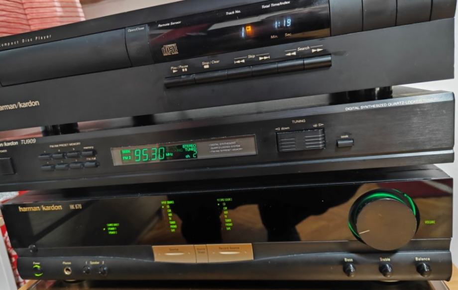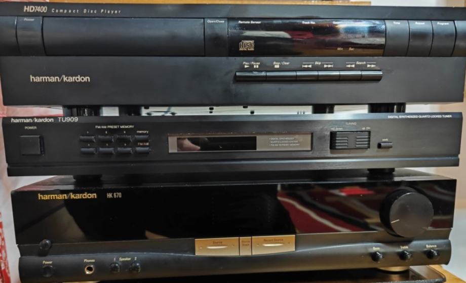 Prodajem Harman/kardon hi fi liniju koja se sastoji od hk 670 pojačala, tu 909 tunera i hd 7400 cd playera. slike su od uređaja koji se prodaju.