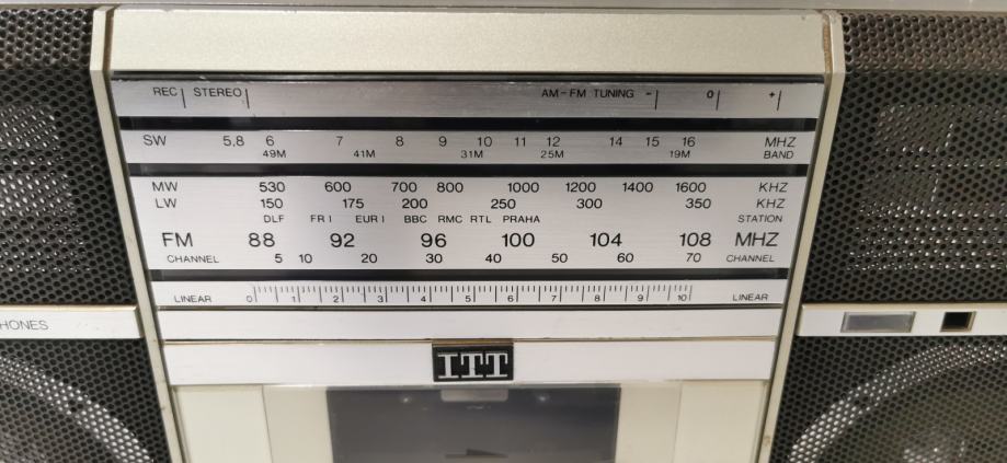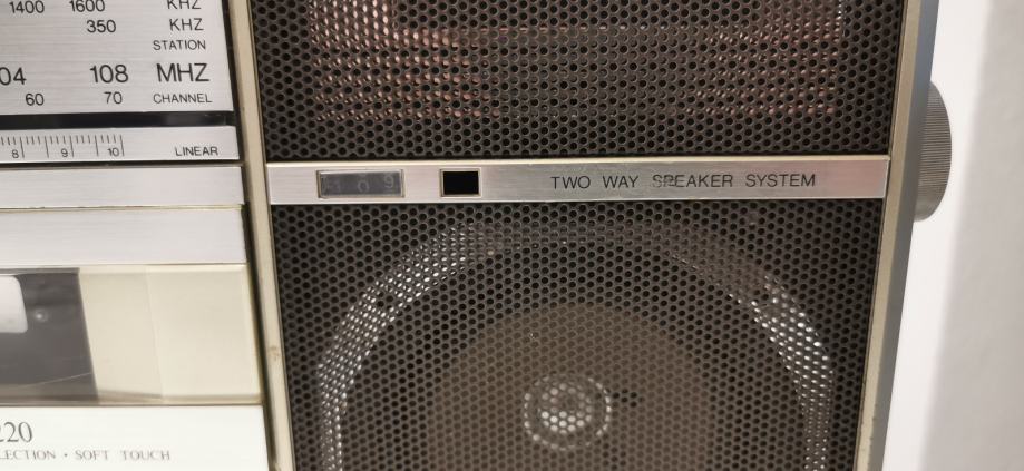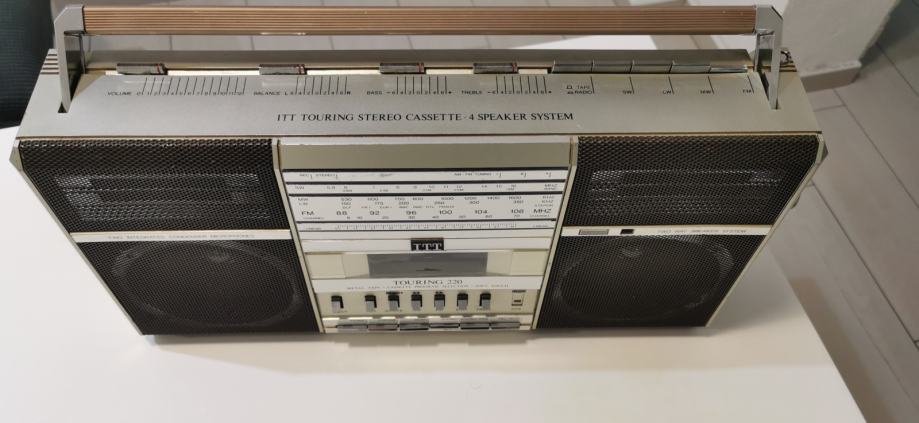 Prodajem navedeni radio kasetofon iz 1984/1985 godine koji je u relativno dobrom stanju,kaseta ne radi,antena se ne moze izvuči i puklo je dugme za tape counter a radio prijem je i zvrstan sa uvučenom antenom(ne narusava prijem)vintage primjerak sa finim zvukom.Moguce testiranje prije kupovine,rasprodaja osobne kolekcije.Uređaj je težak 5 kilograma a dimenzije su 490 x 250 x 110 mm