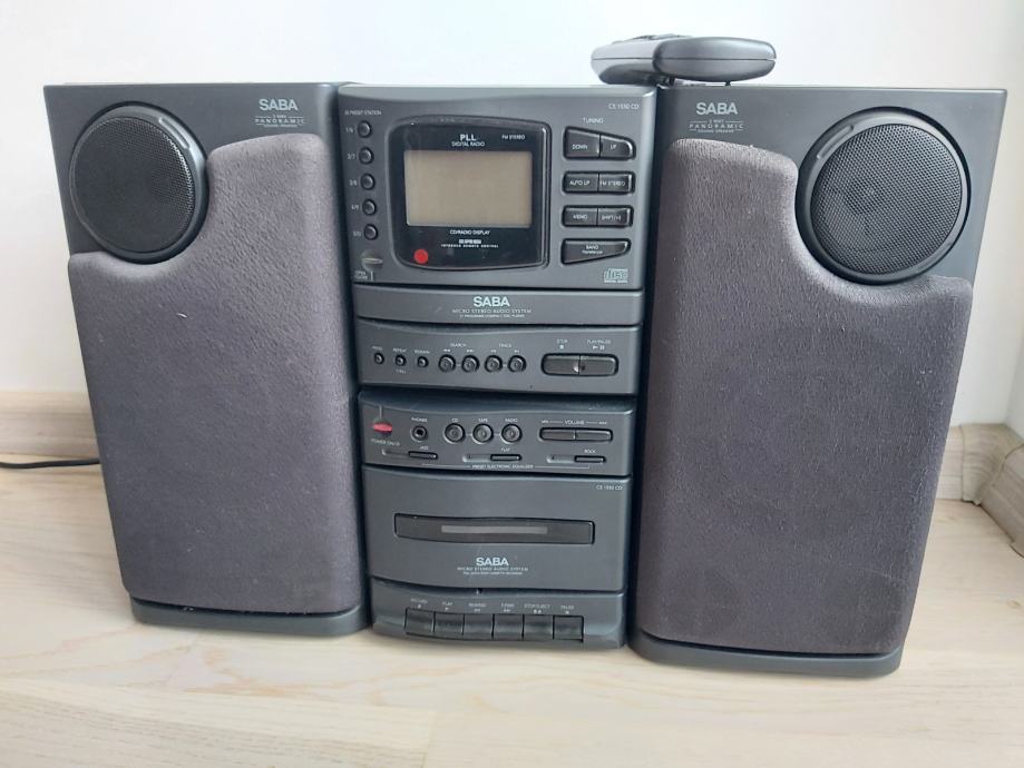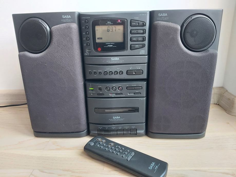 Glazbena linija Saba CS 1550 CD, dvokomponentna, sa zvučnicima 10W + 10W, daljinski, ima radio, cd i kazetofon, ispravna i savršeno očuvana