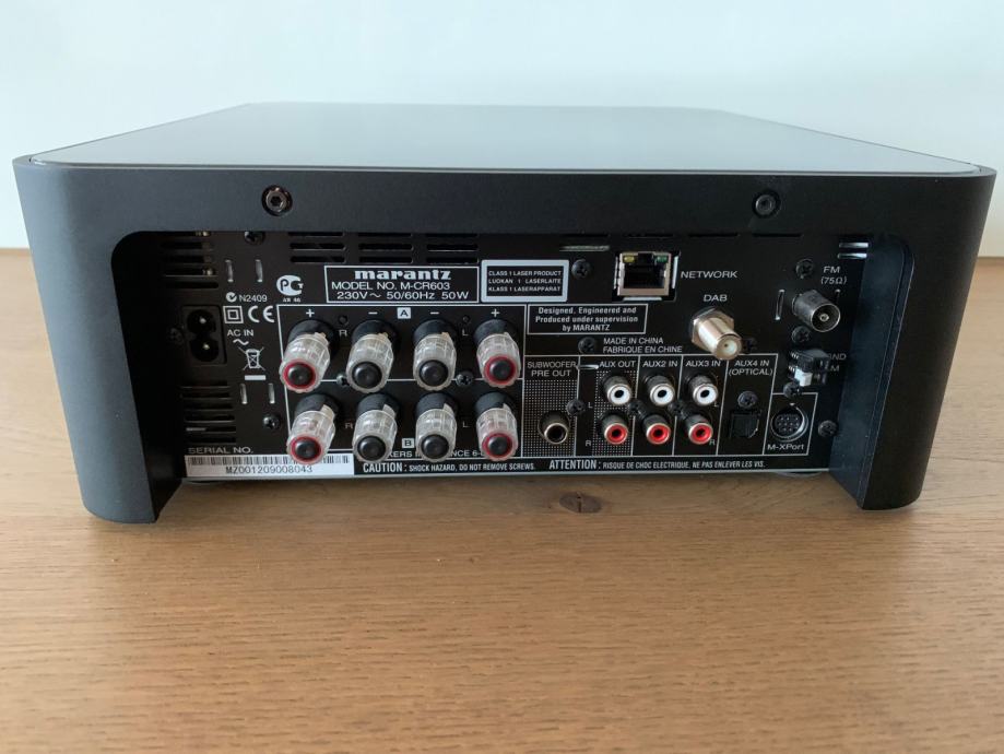 Integrirani CD player i prijemnik s RDS-FM, internetskim radiom i DAB tunerom. S daljinskim. Snaga 2 x 50 watta na 8 ohma. Analogni priključci za 1 x linija, subwoofer pre out, digitalni priključci: 1 x in (toslink), USB i LAN priključak itd. Dimenzije cca 28x11x30 cm (ŠxVxD)