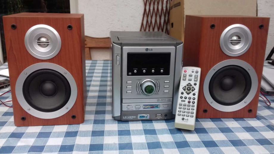 Odličnog zvuka, drveni zvučnici, daljinski, USB MP3, CD, kazetofon