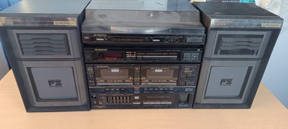 Gramofon, tuner, kazetofon, pojačalo i zvučnici iz osamdesetih.