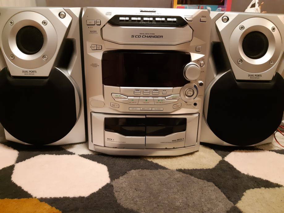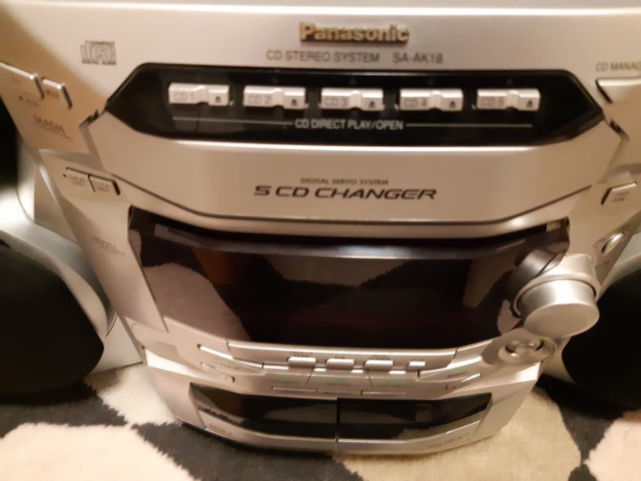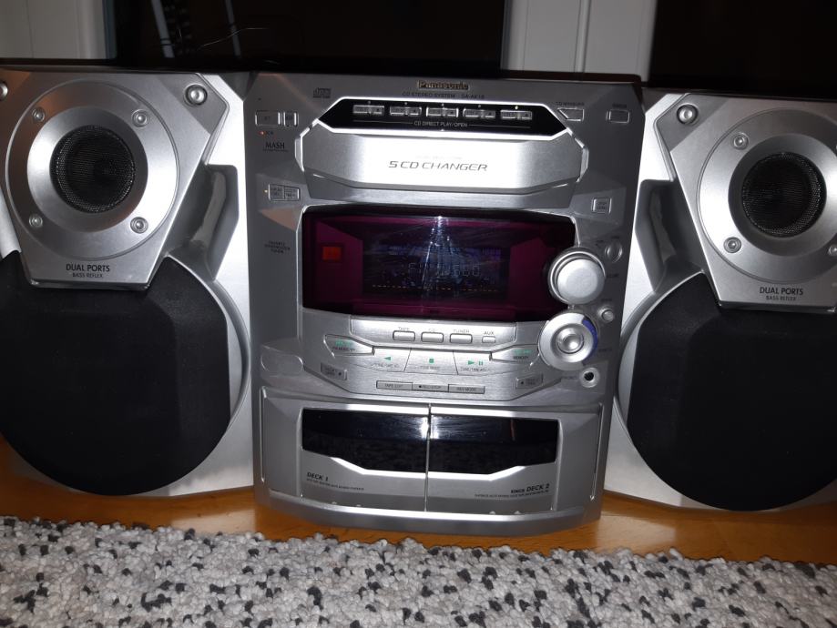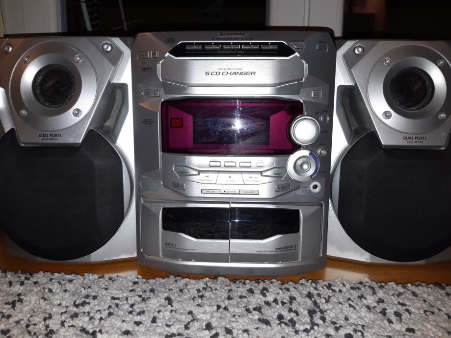 Dupli kazetofon, 5 CD-a, radio, 2 odvojena zvučnika.