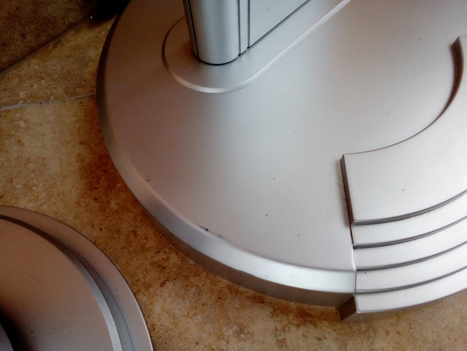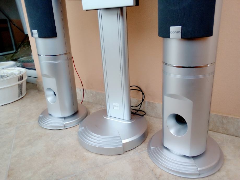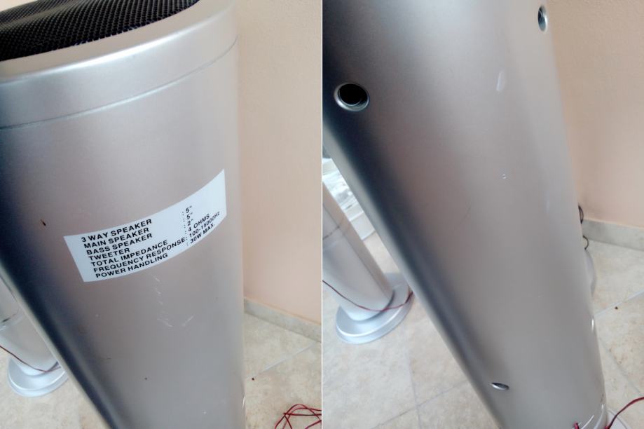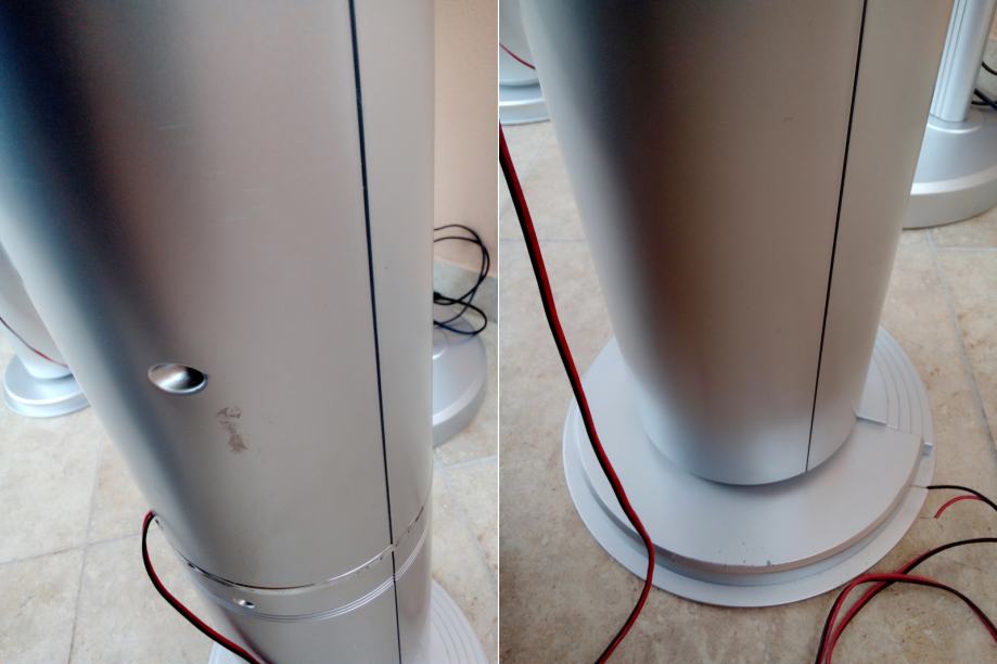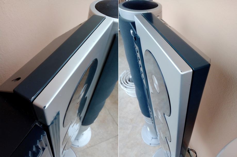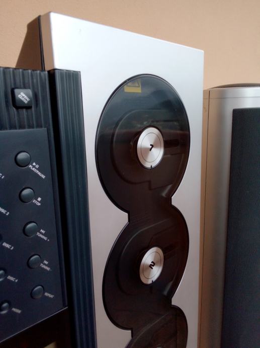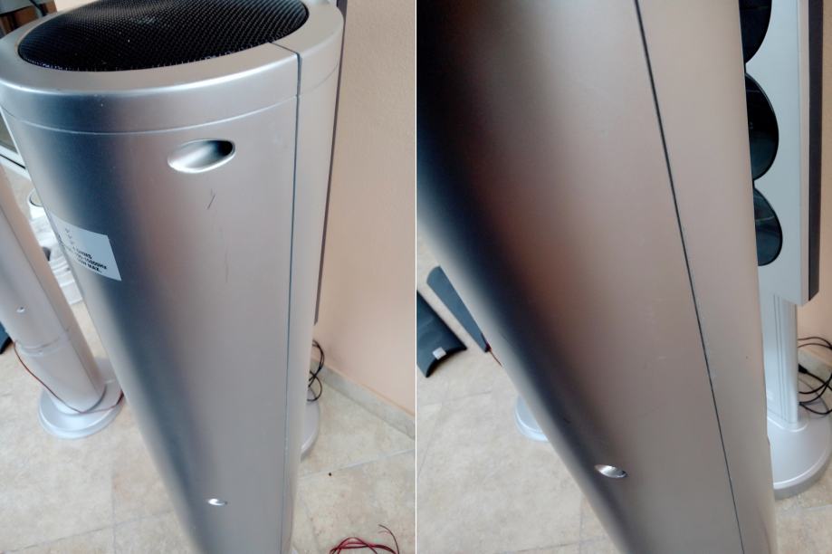 Fotografije uz oglas vjerno prikazuju uređaj kojeg prodajem. Na prvi pogled sve izgleda odlično, ali ipak ima dosta ogrebotina na zvučničkim kutijama, postoljima i vratima CD playera. Kod gornjeg ruba jedne od mrežica nedostaje ukrasna plastika, što najbolje prikazuje 11. fotografija.