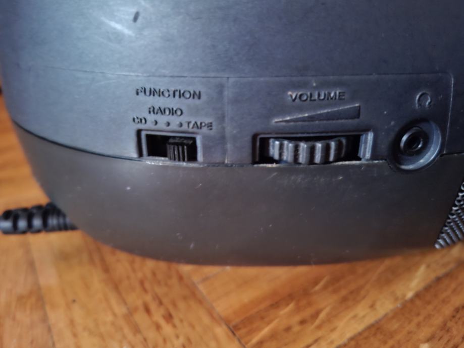 Radi, ali loš kontakt tj. Tipka gdje se pali i prebacuje između kasete, cd-a i radija, gubi kontakt te se mora rukom naštimavati kako bi se zvuk čuo. Ponekad ne premotava kasetu. Sve ostalo ok. Očuvan je.