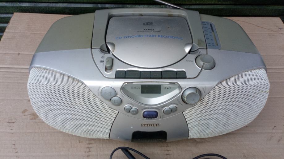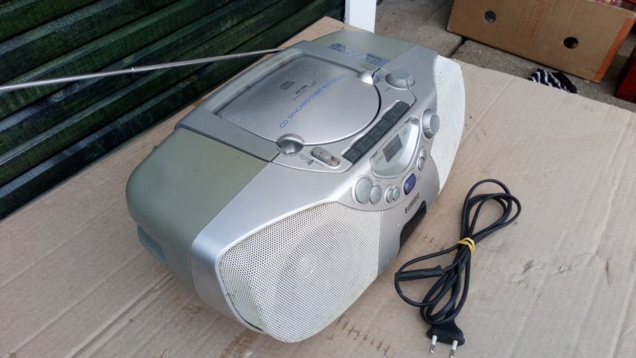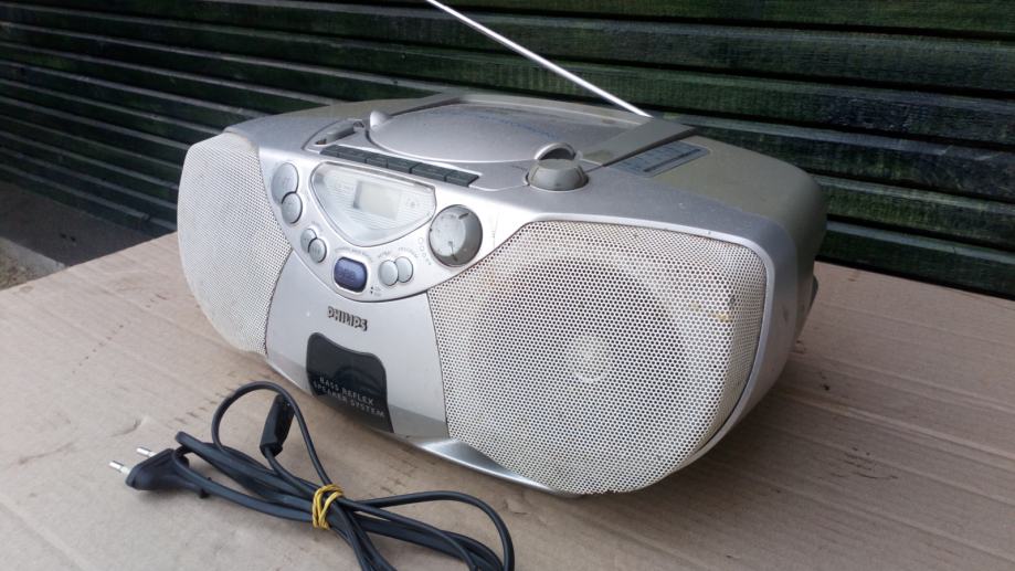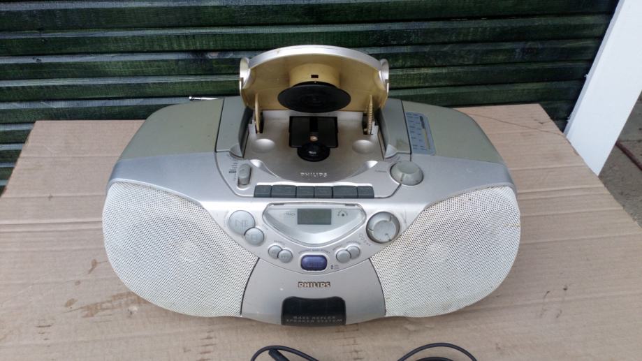 Radio cd/kazetofon marke PHILIPS.. Radi na struju ili baterije. Potpuno je ispravan. Znaci radi i radio. Cd ucitava bez problema. Kazete vrti, premotava i sviraju normalno. Samo kod prebacivanja funkcija zna malo dugme zastekati. Ima DBB(DYNAMIC BASS BOIST). Dimenzije je 39x19x12 cm.