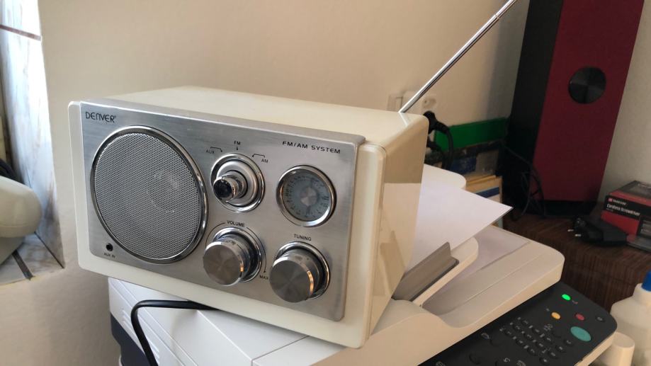 Prodajem korišten AM/FM radio marke Denver TR-61 white potpuno ispravan. Sa strane ima par sitnih ogrebotinica. Cijena 50 kuna.