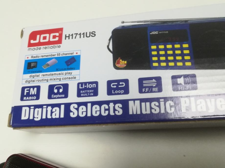 Prodam Joc STEREO najkvalitetniji radio prijemnik i pler MP3 ili USB plejer i FM,digitalni radio, sa puno funkcija.Digitalno biranje stanica, ne sumi u njima ,ima čist STEREO glas.Prima sve stanice okruženja ,Slovenija ,Austrije BiH Hu,i I ITALIJE Radi na bateriju od mobitela.Koja je u kompletu.sa punjačem i antenom ,uputama i garancijom te rac.To je najkvalitetniji do sada aparat na tržištu.Ni mikro linije LG,ili MAKITA nisu ništa bolje a Stereo je music.Prodam za 289 kn.,SADA 30 E. Moguča dostava postom.