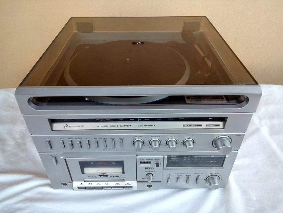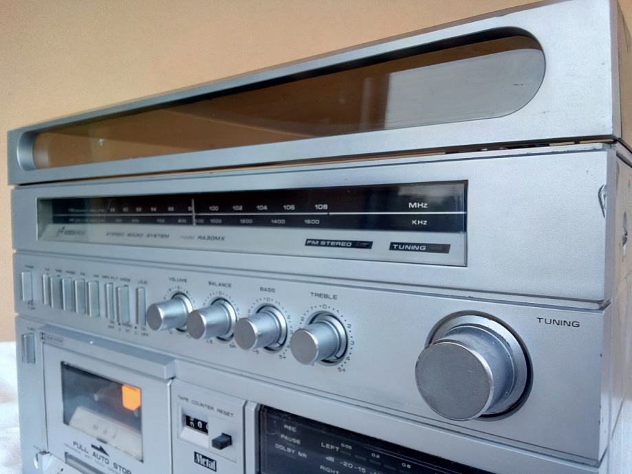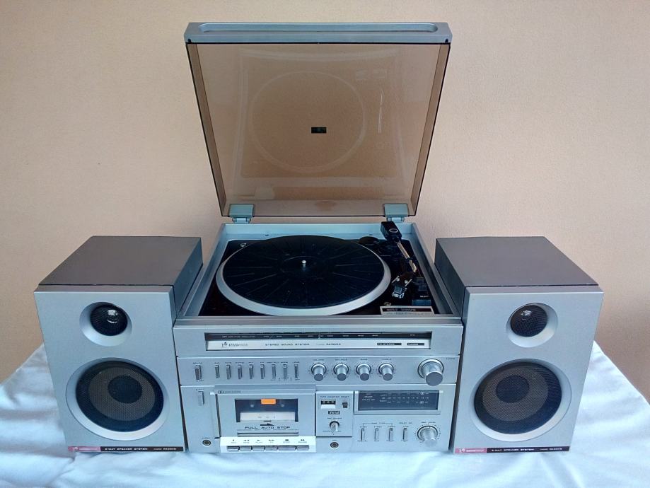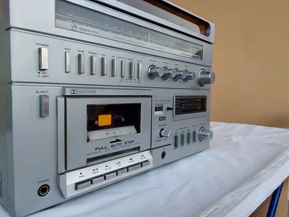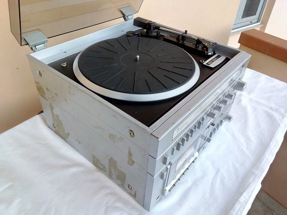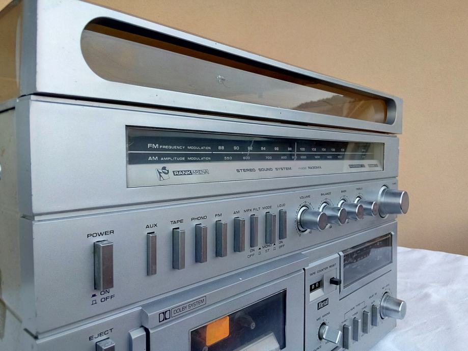 Prodajem glazbeni centar Rank Arena RA30MX sa zvučnicima RA30XS, dosta dobre kvalitete zvuka, proizvedenih u Južnoj Koreji. Uglavnom je ispravan pa mi je lakše navesti što je neispravno na njemu nego navesti što je ispravno. Kasetofon ne radi, uopće ne reagira, čak se ni mehanizam ne podiže pri pritisku na tipku "play". Kod gramofona ne radi mjenjač brzina tako da vrti samo na 33 okretaja, a remen prenosi umjerene vibracije sa motora na tanjur pa se, dok se sluša ploča, u pauzama između pjesama i kod tiših dionica glazbe, u zvuku čuje tiha buka. Uz oglas je priložen video u kojem je snimka zvuka sa gramofonske ploče koja je svirana na ovom gramofonu pa možete i sami ocijeniti razinu spomenute buke i odnos njene glasnoće i glasnoće glazbe. Na kraju ručke gramofona, kraj utega, su zalijepljene dvije kovanice, kako bi gazna sila igle na ploči bila normalna, a sada iznosi 1.40 grama. Samo dok koristim potenciometre za glasnoću, ton i balans, na zvučnicima se čuje tiho šuškanje, ništa opasno za zvučnike, to šuškanje prestane čim prestanem koristiti te potenciometre. Sve ostalo na uređaju radi bez kakve greške i zvučnici rade normalno. Igla na gramofonu je nova. U navedenu cijenu, tj. 100 €, uračunata je vrijednost prijemnika bluetooth signala, koji se napaja iz utičnice napona 110-240 V (npr. standardna zidna utičnica), a primljeni signal kabelom šalje u aux ulaz na poleđini uređaja.