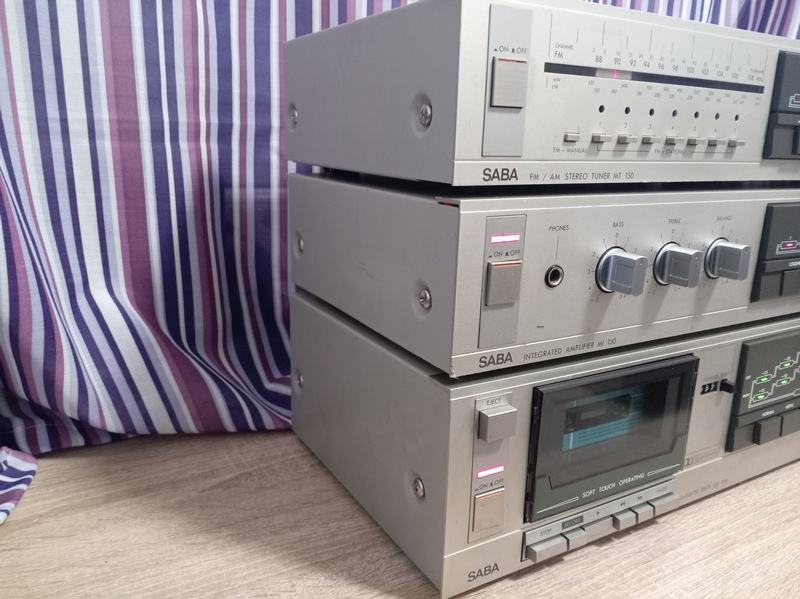Prodajem lijepo očuvanu liniju , komplet 3 odvojivih komponenti SABA 150 , koja se sastoji od pojačala MI150 , kazetnog decka CD150 , te tunera MT150 . Snaga pojačala 2x40w , 8 ohm , loudness . Tuner sa 7 memorijskih mjesta . Deck dolby , normal , chrom , metal . Phono ulaz . Znači , svaka komponenta može biti kombinirana sa bilo kojim drugim komponentama . Prednjica na svim komponentama aluminij . Širina je 44 cm , a težina kompleta oko 12kg . Poželjno osobno preuzimanje uz probu . tel : 099 4722848