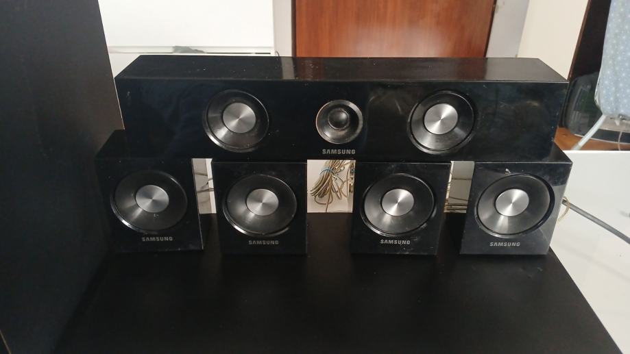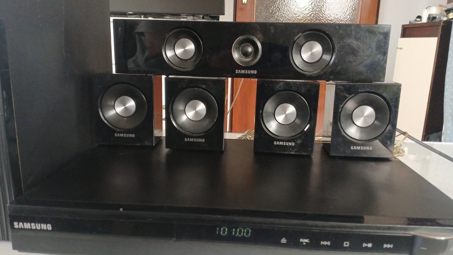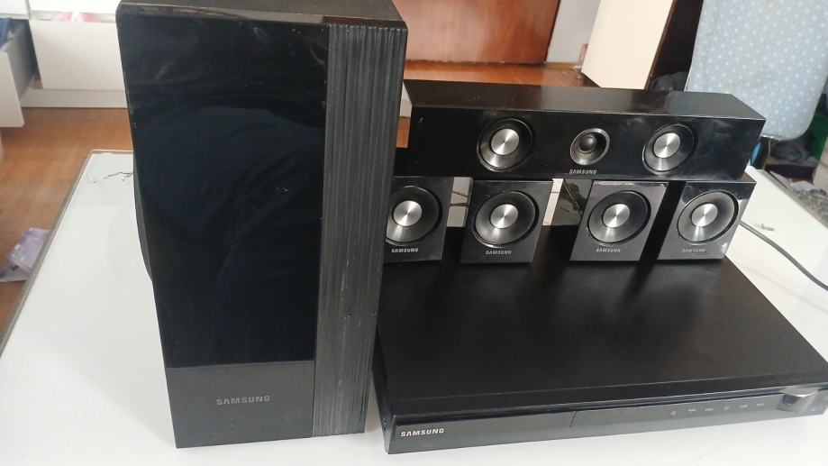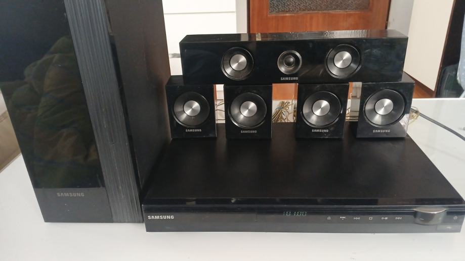 Samsung ht c 350 liniju kucno kino prodajem za 40 eura. Sastoji se od 4 mala zvucnika, centralnog, subwoofera, kablova, pojacala sa radiom, usb ulazom, aux ulazom i cd/ dvd citacem