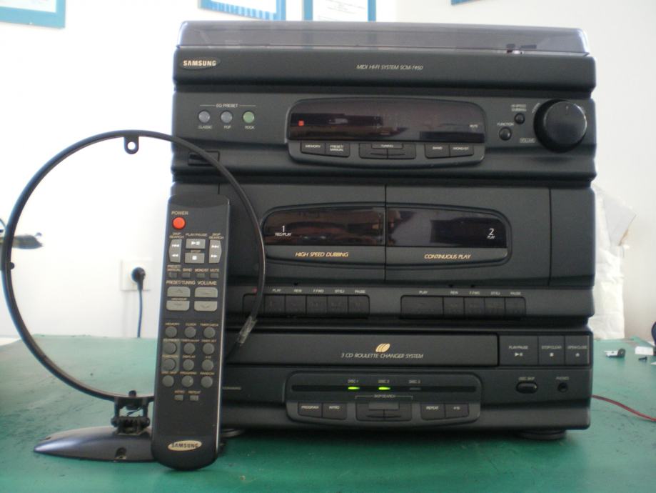 Prodajem ISPRAVNU glazbenu liniju SAMSUNG - SCM 7450 , uz liniju isporučuje se daljinski upravljač , antena i zvučne kutije .