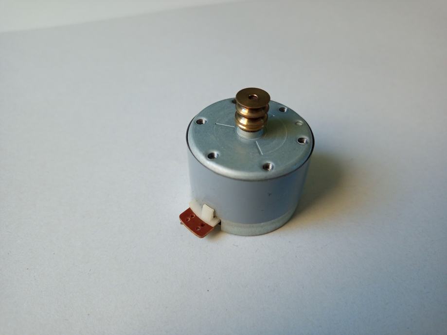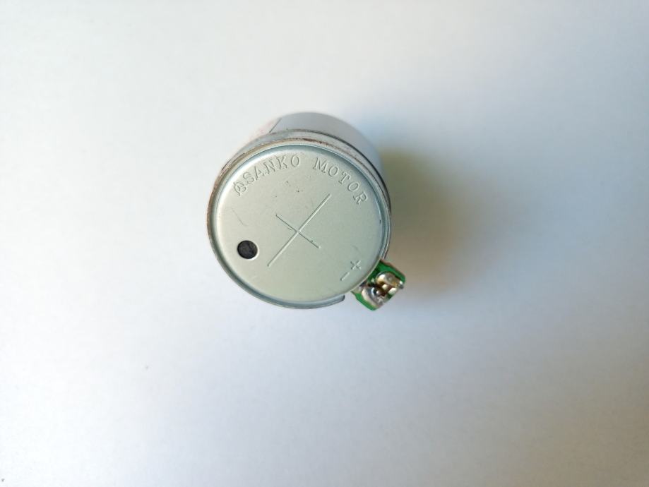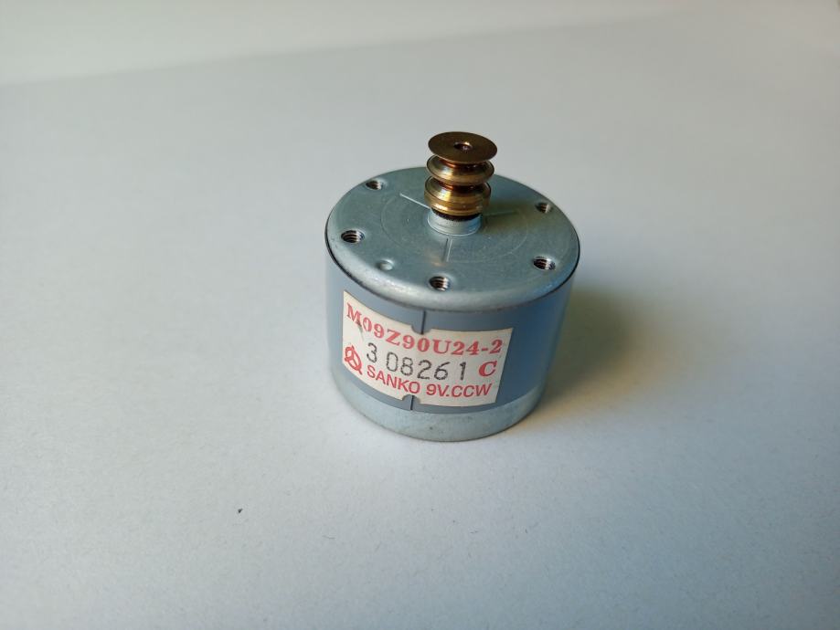 Prodajem ispravan motor Sanko M09Z90U24-2, skinut sa kasetofonske jedinice koja je bila sastavni dio glazbenog centra Sony MHC-RG-220. Radi na 9 V istosmjerne struje, vrti se u smjeru koji je suprotan smjeru kretanja kazaljke sata (CCW, oounterclockwise) i na njemu postoji potenciometar za podešavanje brzine vrtnje. Promjer oklopa je 31.5 mm, visina oklopa 23.8 mm, a promjer osovine 2 mm.