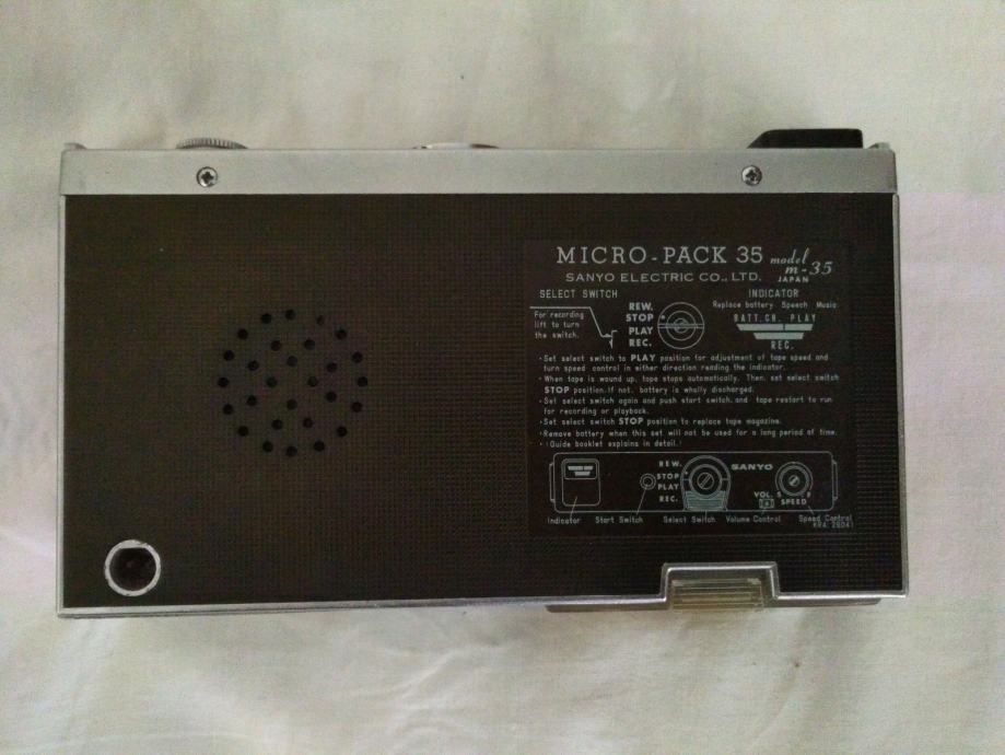 SANYO Micro-Pack 35 prijenosni snimac sa kolut trakom (preteca kazetofona). Proizveden je 1964 godine. Radi ma 4 AA baterije. Ispravnost nepoznata.