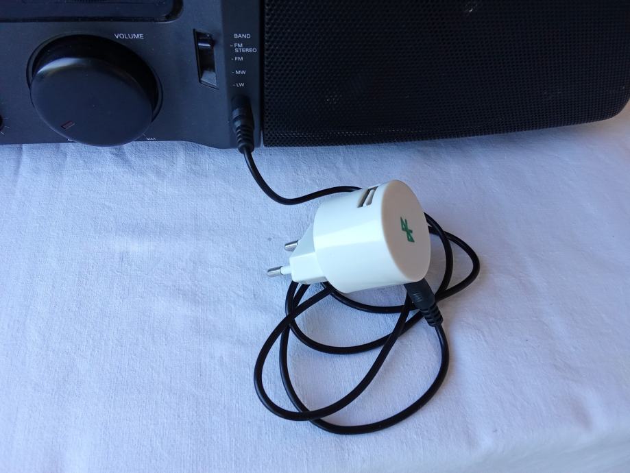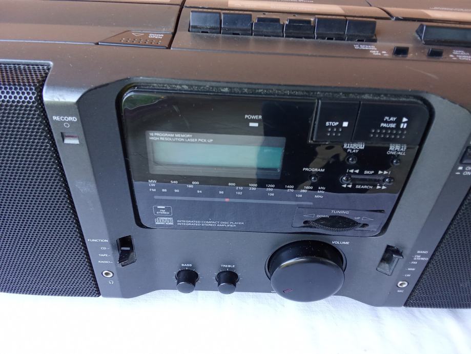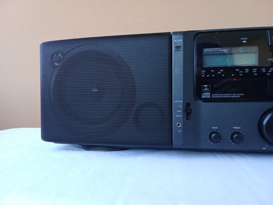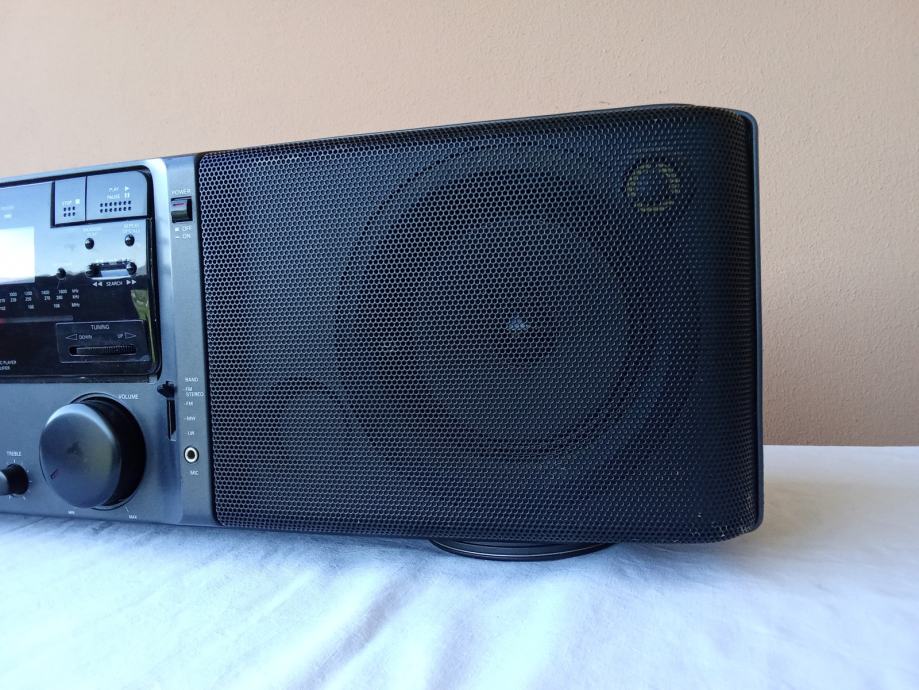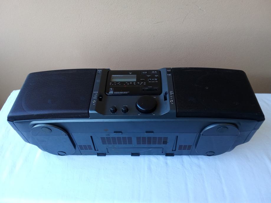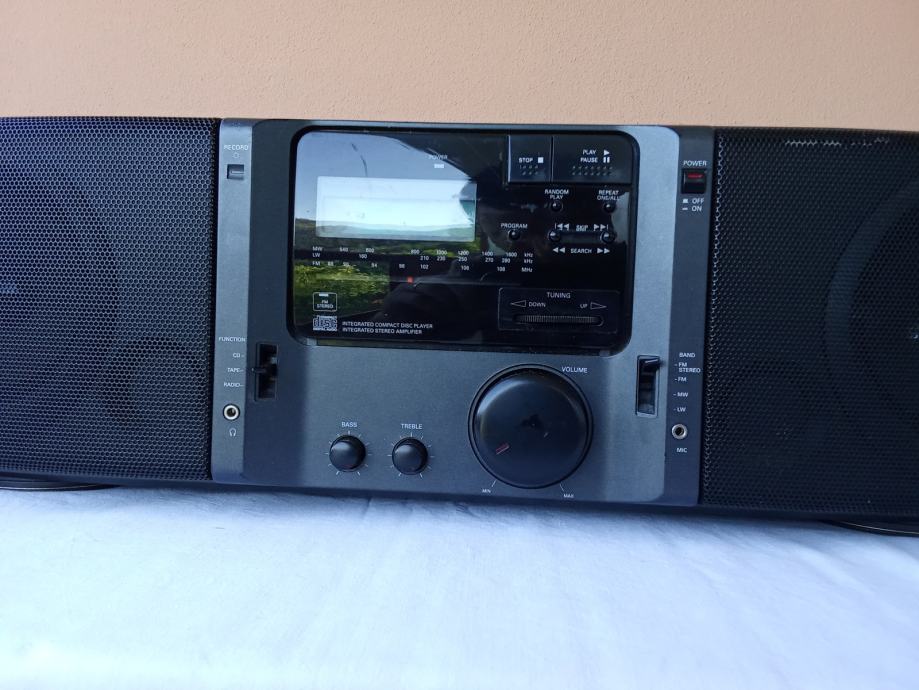 U nastavku ću navesti sve što je na njemu neispravno, a sve ostalo možete smatrati potpuno ispravnim. Čitač CDa pokušava učitati diskove, ali ne uspijeva, a njegova vratašca stoje u zatvorenom položaju samo uz pomoć nečega, npr. selotejpa ili izolir-trake. Lijeva strana kasetofona ne premotava vrpcu u oba smjera. Dakle, uređaj služi kao radio-kasetofon. Relativno je velik, dug/širok je 62 cm, dubok 23, a visok 18 cm. Uz uređaj, bez doplate, kupac dobiva vanjski prijemnik bluetooth signala, koji se napaja iz utičnice napona od 100 do 240 V, a primljeni signal kabelom šalje u tzv. "mic" ulaz na prednjoj strani uređaja.