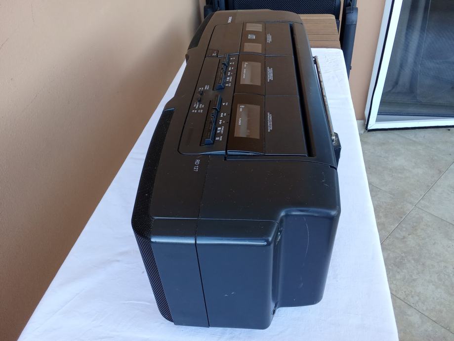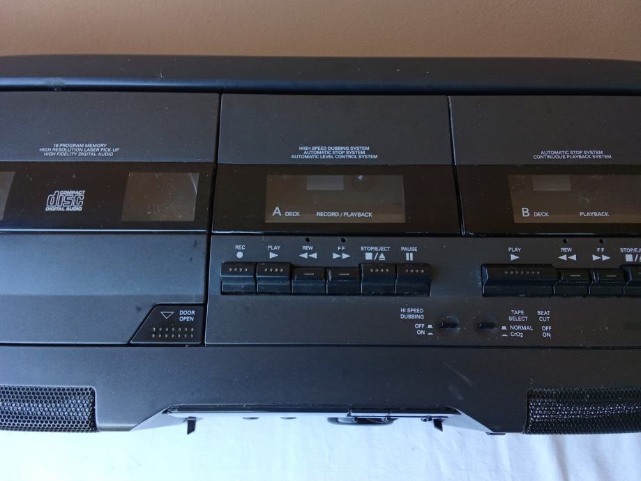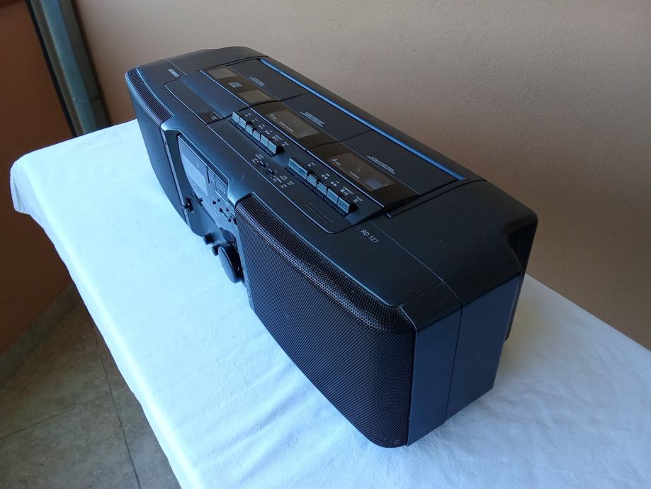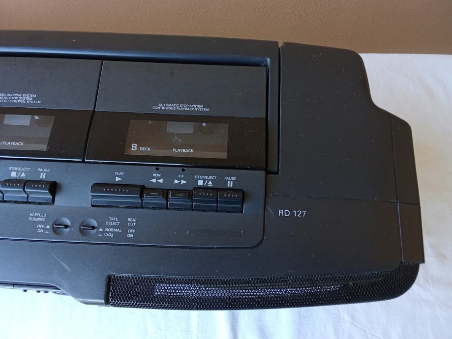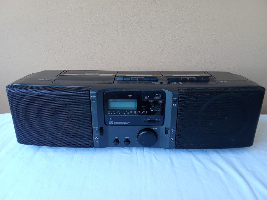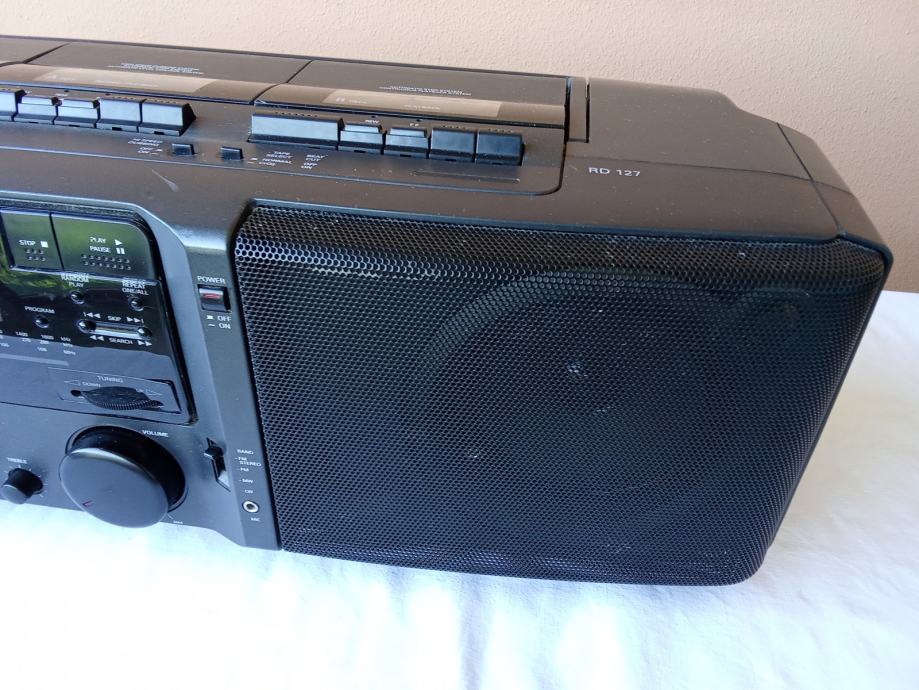 U nastavku ću navesti sve što je na njemu neispravno, a sve ostalo možete smatrati potpuno ispravnim. Čitač CDa pokušava učitati diskove, ali ne uspijeva, a njegova vratašca stoje u zatvorenom položaju samo uz pomoć nečega, npr. selotejpa ili izolir-trake. Lijeva strana kasetofona ne premotava vrpcu u oba smjera. Dakle, uređaj služi kao radio-kasetofon. Relativno je velik, dug/širok je 62 cm, dubok 23, a visok 18 cm. Uz uređaj, bez doplate, kupac dobiva vanjski prijemnik bluetooth signala, koji se napaja iz utičnice napona od 100 do 240 V, a primljeni signal kabelom šalje u tzv. "mic" ulaz na prednjoj strani uređaja.