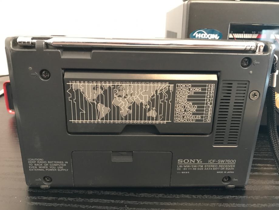 The Sony ICF-SW7600 is a compact, microprocessor-controlled, frequency synthesized general coverage portable receiver. Direct access tuning is provided along with a multifunction LCD digital readout for unsurpassed convenience and accuracy (5 kHz step on shortwave). Just press the numbered keys to match the frequency you want to hear. Manual and automatic scan tuning are also provided. Ten memories are provided for your favorite stations. The ICF-SW7600 tunes from 150 to 29995 kHz for solid coverage of LW, MW and shortwave. Single Sideband (SSB) reception is supported. A record output jack is included for taping off the air. Advanced features include: dial light, LED tune indicator, tilt stand, keypad lock, 24 hour digital quartz clock with dual timer, Local-DX sensitivity switch, tone switch and external antenna jack. There is a 9/10 kHz MW channel step switch inside the battery comparment.