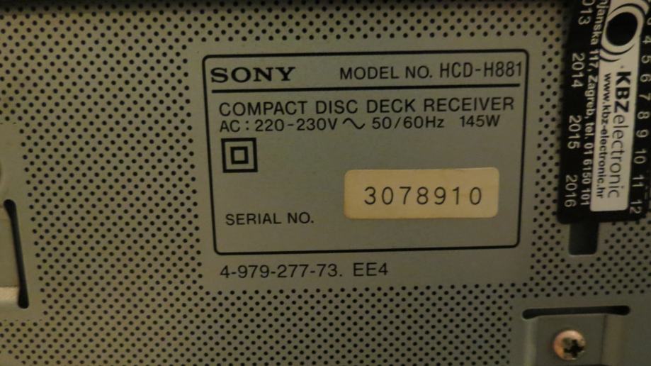 Na prodaju je linija Sony MHC 881. Linija ima cd changer za 3 cd-a, radio i kazetofon. Laser je zamijenjen prije 2 mjeseca. Cd changer i radio su u potpunosti ispravni, a kazetofon nije dugo korišten (mogu ga isprobati ako treba). Uz liniju dolaze dva SS-H991 zvučnika, dva SS-SR991 zvučnika i daljinski. Upute za korištenje i servisne upute (za zvučnike) dolaze u PDF formatu.