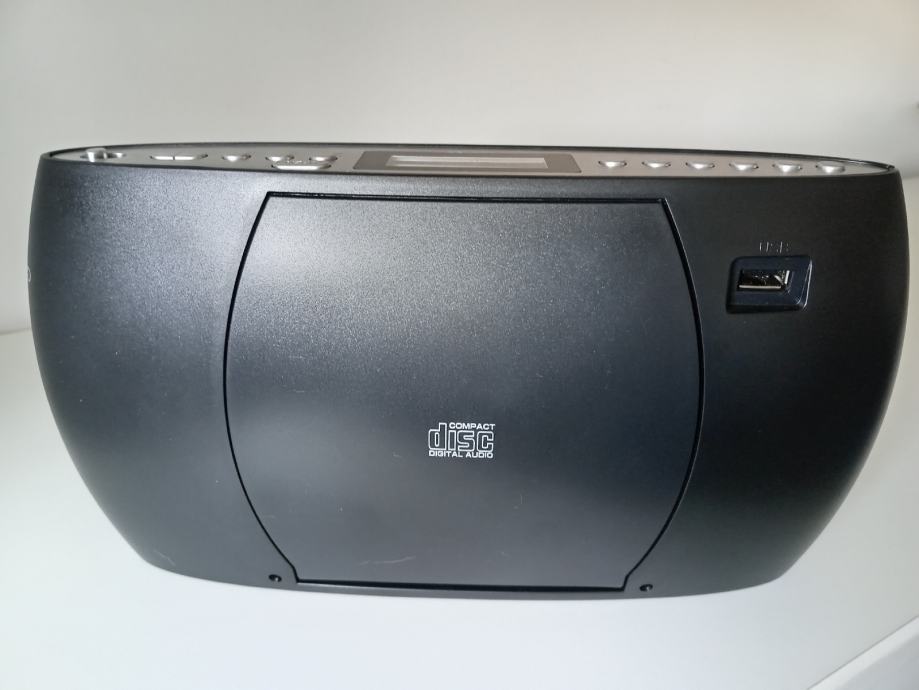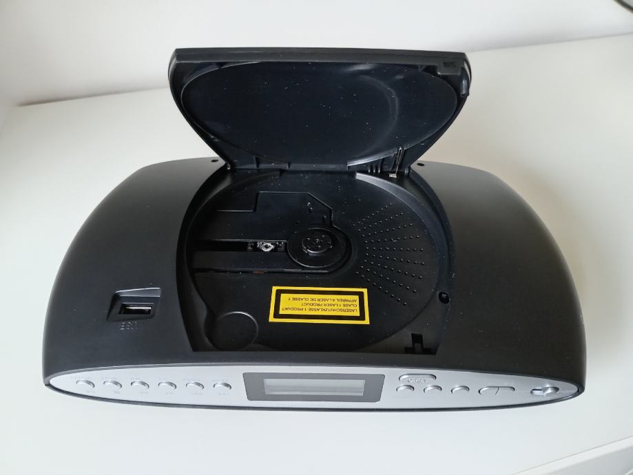 FM-PLL radio, CD-R/RW, USB utor za MP3 reprodukciju, utor za slušalice, AC/DC adapter, napajanje kabel ili baterije. Potpuno novo, nikad korišteno, s knjižicom i računom. .