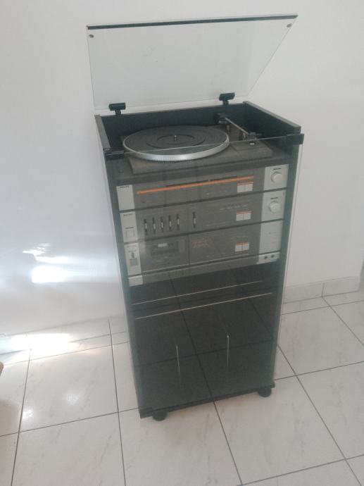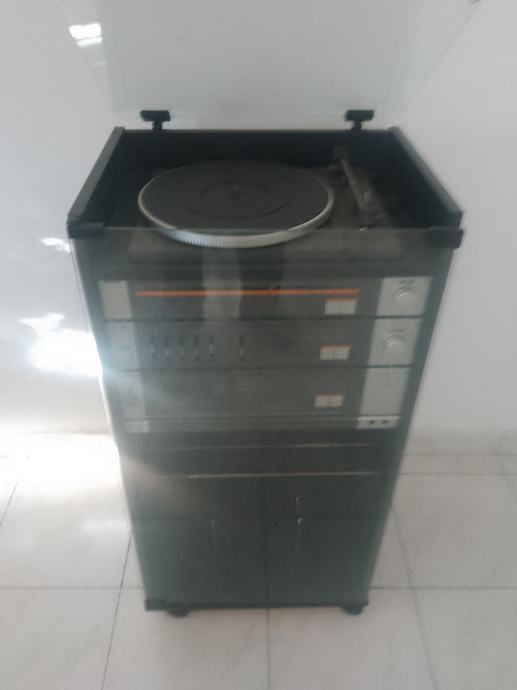 osim sta stoji stereo u ormaricu , od ispod mozete staviti i gramofonske ploce i iznad jos i kasete , ili DVD itd,,,,, sve je jako lijepog izgleda i ocuvano ,bez orebotina , crtica itd - vidi se i na slikama kako to izgleda ,