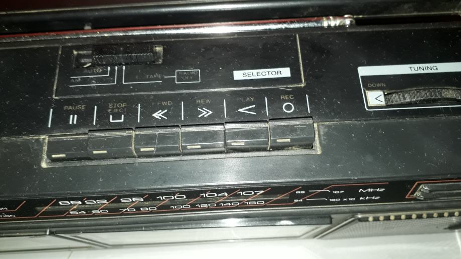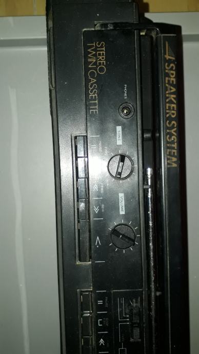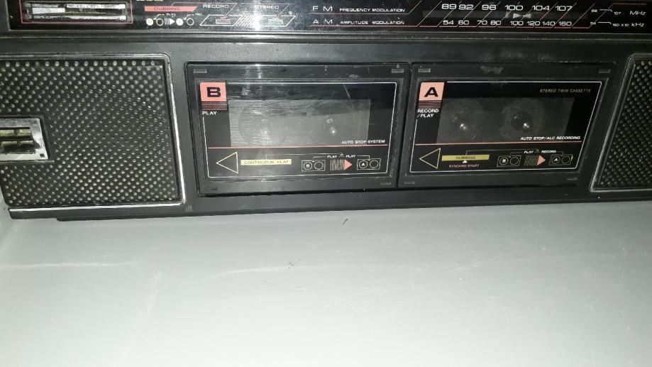 Tuner radi normalno i dobro na oba zvucnika reproducira zvuk..kazić neispravan jedna glava vrti al jedva druga ne.premotavaju trake...radi na 220 i baterije.dolazi sa naponskim kablom.kao tranzistor dobar.šaljem